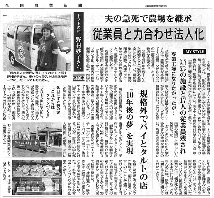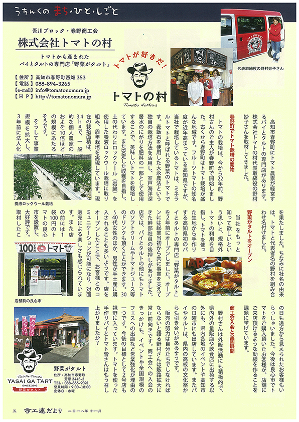地元のメディアをはじめ、トマトの村、野菜がタルトを掲載していただきました!